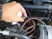 オイルレベルゲージの確認 レベルゲージを一旦抜いてティッシュで拭き、また差し込んで、また抜いて確認する♪ エンジンが熱いウチは火傷するのでやんない事!