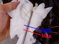 オイルの湿っているところが「Min」から「Max」の間にあればOK! またこの時オイルの汚れ具合もチェック入れとく。