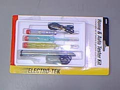 検電テスターキット 上の検電テスターは12V仕様だが、こういったキットを買ってくると、 24V用・100V用・点火プラグ用などのいろんなテスターが入っている。
